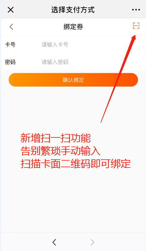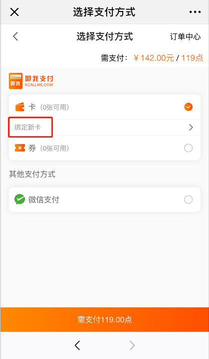 3、绑定卡/券 或使用已绑定卡券进行支付,还可进行微信支付