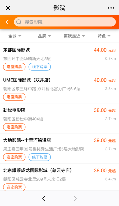 1、从微信公众号主页进入购票页面:选择影片→点击购票→选择区域→选择影院( 选座购票 代表线上选座, 线下购票 代表支持现场兑换)